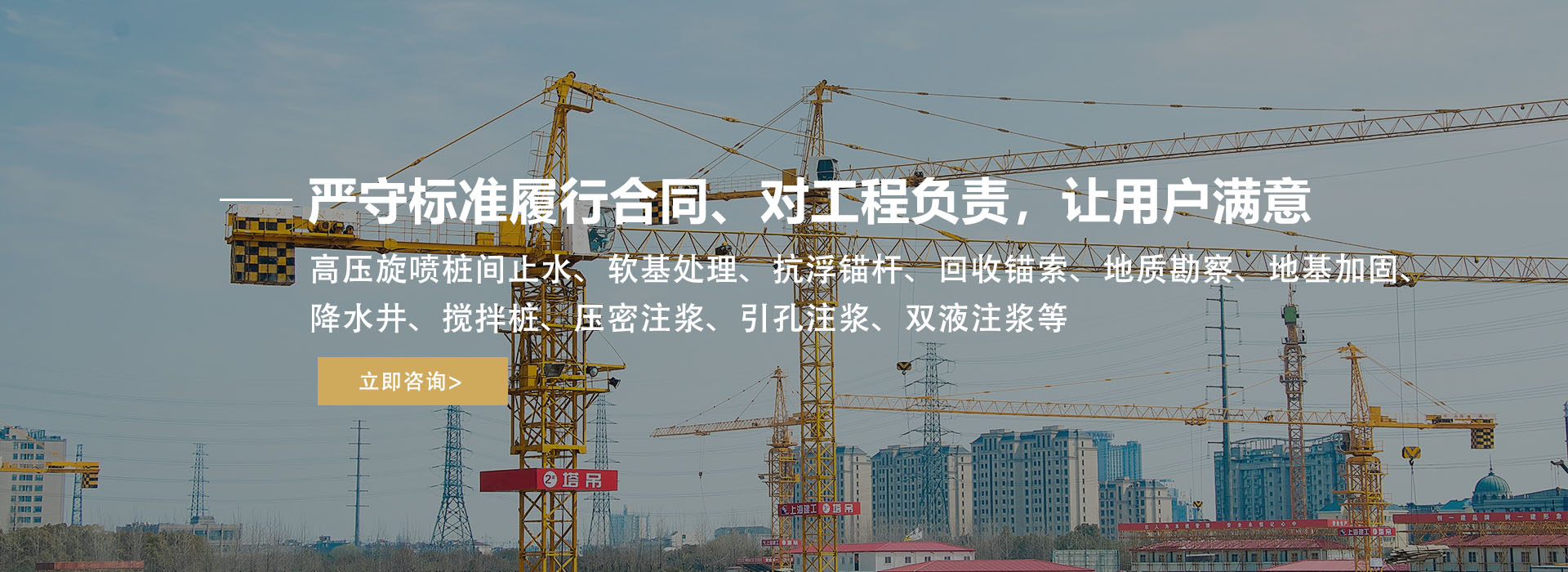 公司主營:高壓旋噴樁間止水、軟基處理、抗浮錨桿、回收錨索、地質(zhì)勘察、地基加固、降水井、攪拌樁、壓密注漿、引孔注漿、雙液注漿等,公司規(guī)模龐大,不斷超越、追求完美,誠信為本、創(chuàng)新為貌、嚴(yán)守標(biāo)準(zhǔn)履行合同,工程優(yōu)質(zhì)、信譽(yù)至上,對(duì)工程負(fù)責(zé),讓用戶滿意。